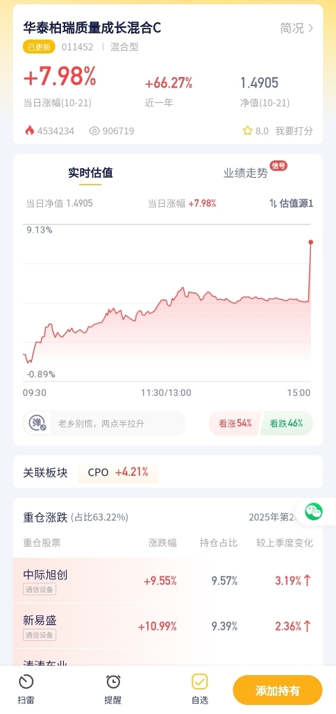 今儿CPO又支棱起来了,光模块板块带头上涨。核心还是英伟达的消息给了信心,2026年出货量看涨,明年1.6T需求肯定差不了。我准备布局一下,华泰柏瑞近期表现挺贴合这波行情,跟着它把握机会应该稳些。