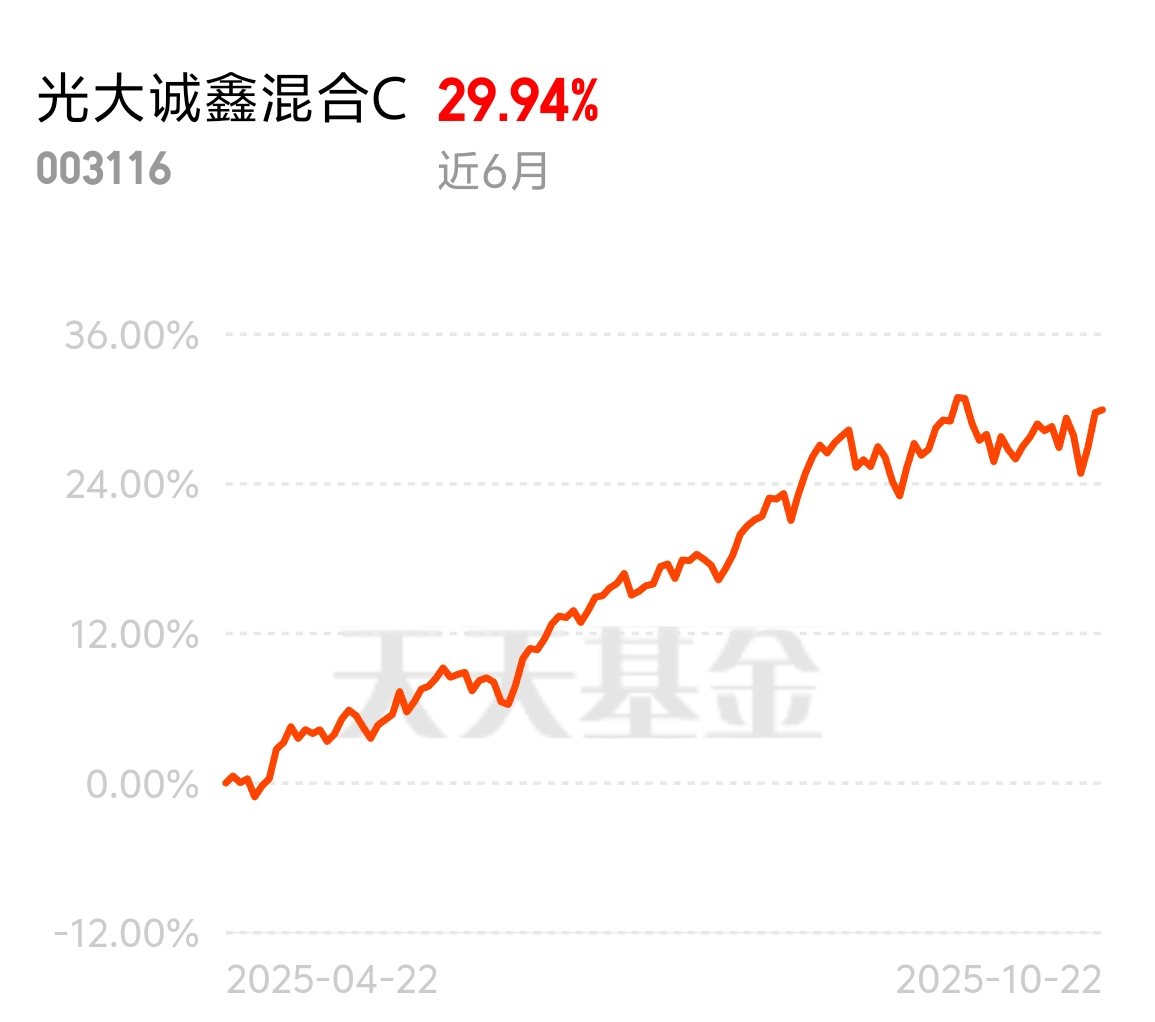 市场一波回调下来,不少好基金露出了机会。光大诚鑫混合C近6个月涨29.94%,业