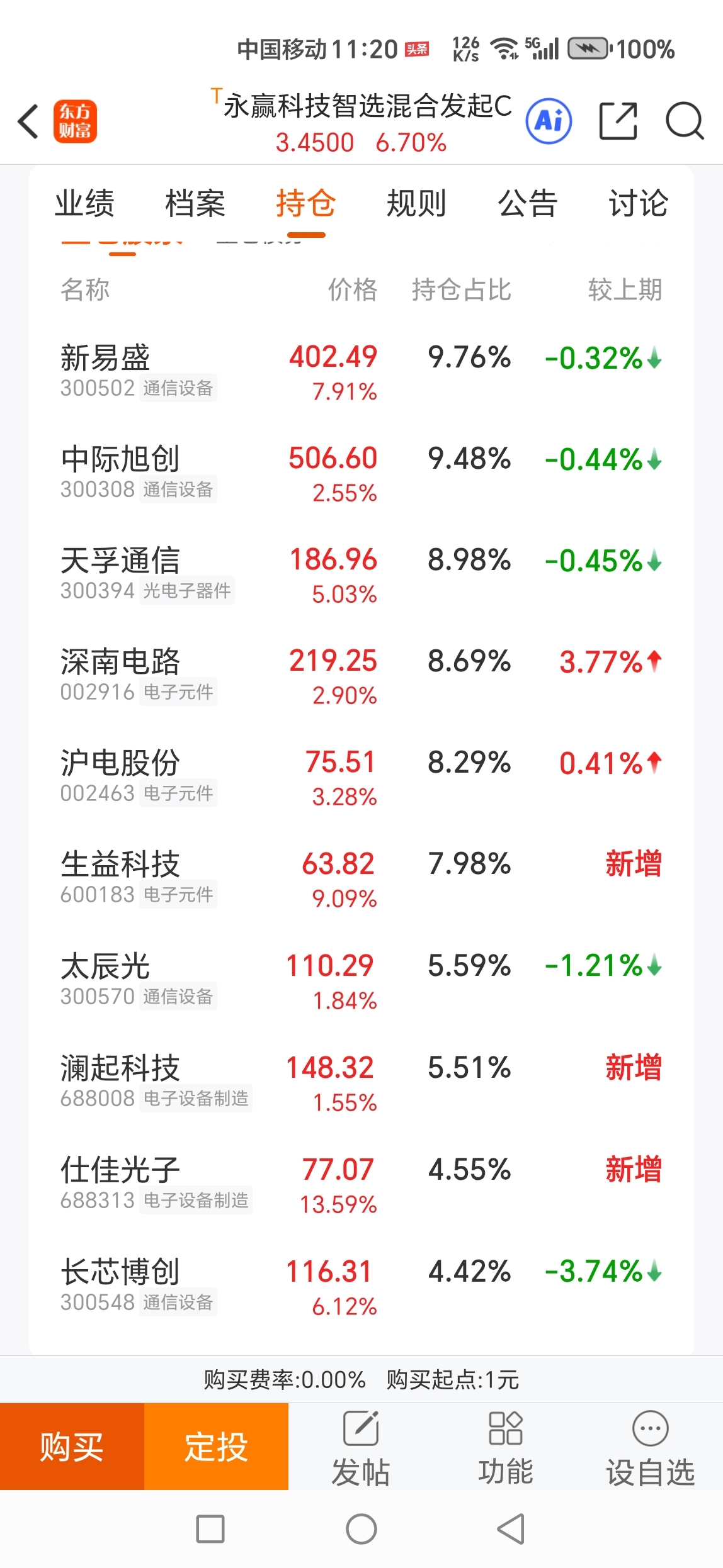 这个调仓很不理想,与永赢智选基金任经理的调仓差远了。看来,买基金真的要跟好经理!