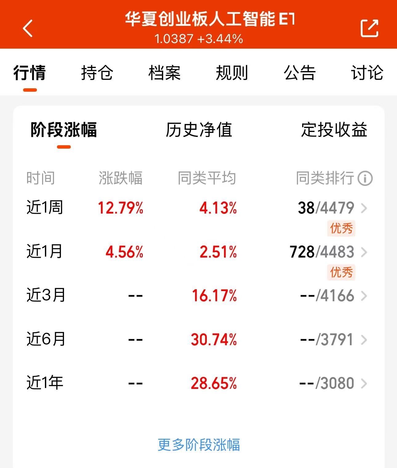 软件国产化已从“可选项”转为“必答题”,人工智能前景可期,近一周收益12.79%,$华夏创业板人工智能ETF发起式联接C$专注持仓AI方面,再加点