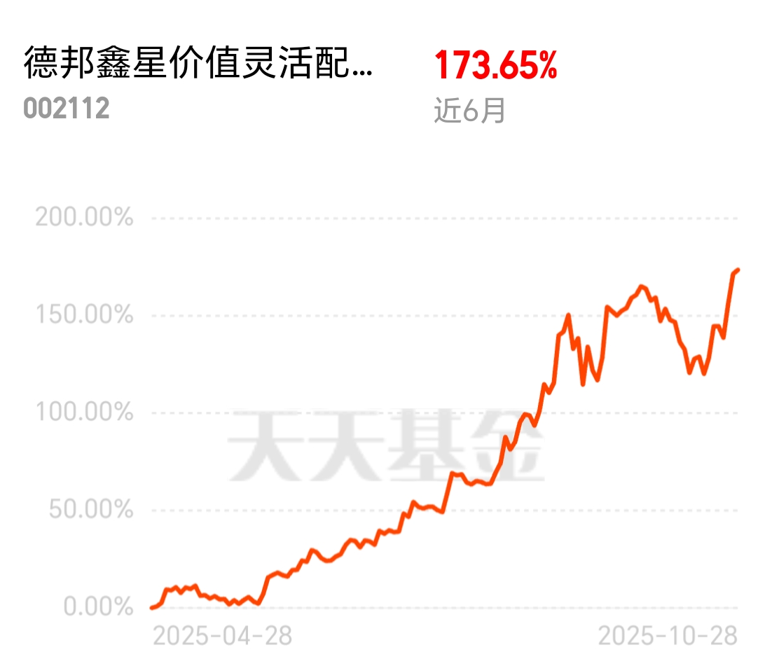 这段时间基金市场分化挺明显,有的波动大有的走得稳。德邦鑫星价值灵活配置混合C就属于稳的,近6个月涨了173.65%,而且信澳和德邦向来更胜一筹,保持住势头,继续加油就行。