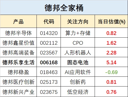 德邦全家桶今日估值来了。固态电池基猛冲$东方人工智能主题混合C$$德邦鑫星价值灵