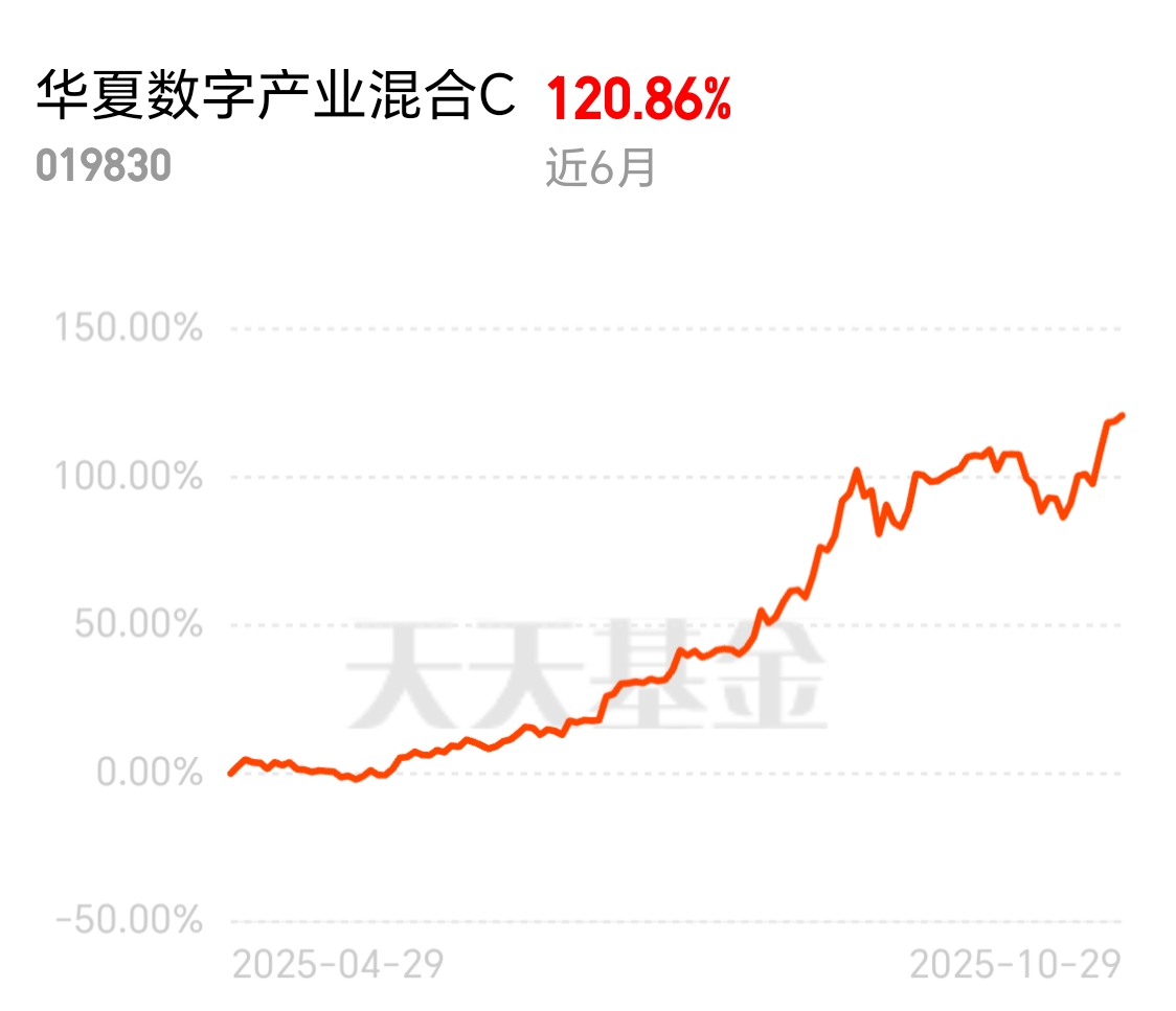 近6月收益120.86%,近3个月收益55.99%,在算力投入增加+大规模更新的背景下,期待这波收益能继续突破前高,今天市场回调,低吸!$华夏数字产业混合C$