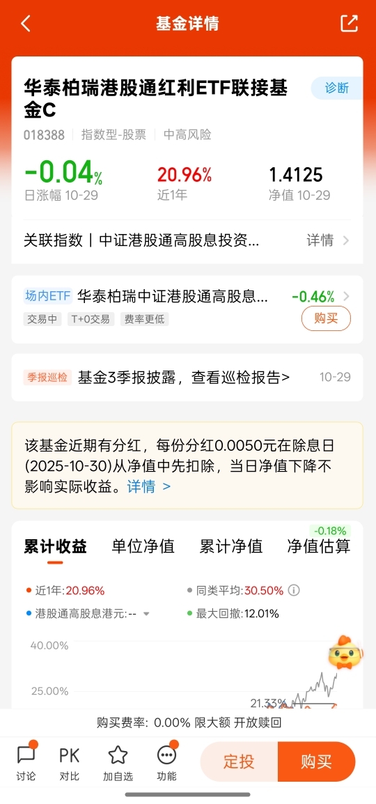 今天港股红利的行情走得真扎实,不是那种昙花一现的涨法。这是因为这些公司本身赚钱能力稳,现金流也足,就算大环境差点,分红也不含糊。现在好多人把理财的钱转过来买这类资产,毕竟既能拿分红,还有可能赚差价。但自己投港股太麻烦,手续多还费钱。华泰柏瑞就解决了这个问题,专门做港股通红利方向,普通人也能轻松参与,跟着行情吃肉。