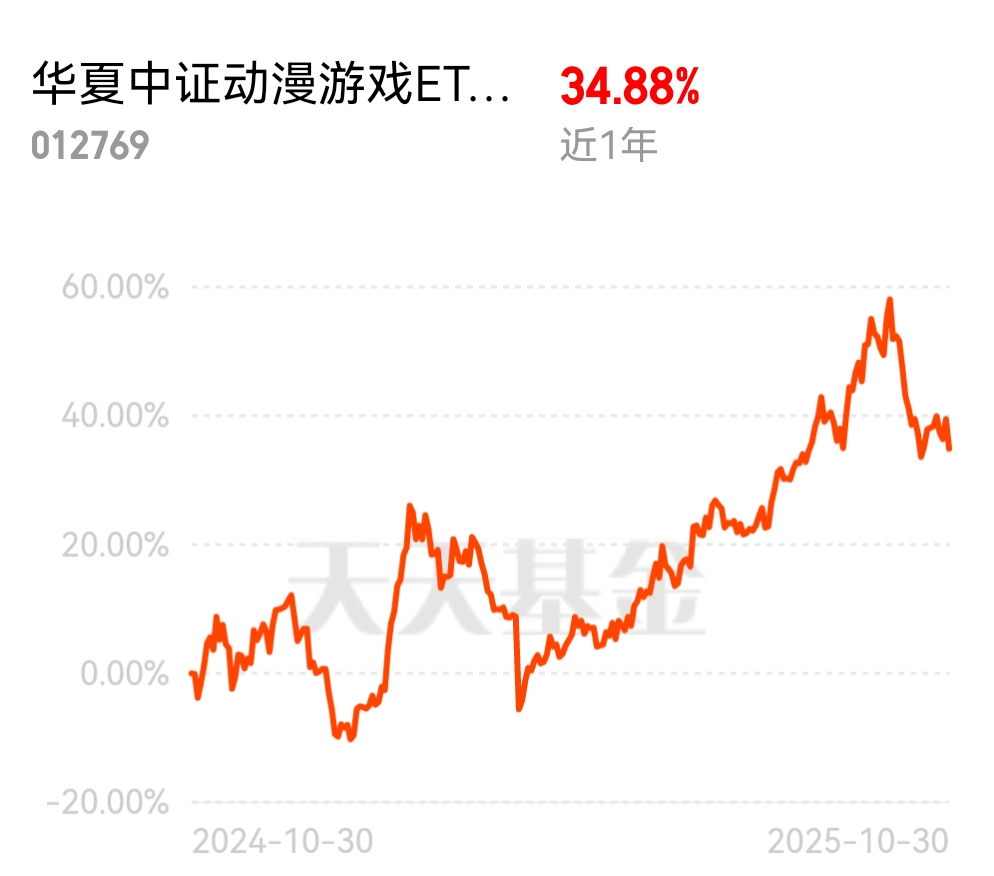 市场风格切换,游戏板块估值不高上涨动力足,当前上涨1%+,近一年收益34.88%,持仓覆盖面广,避险能力强,放心冲$华夏中证动漫游戏ETF发起式联接C$