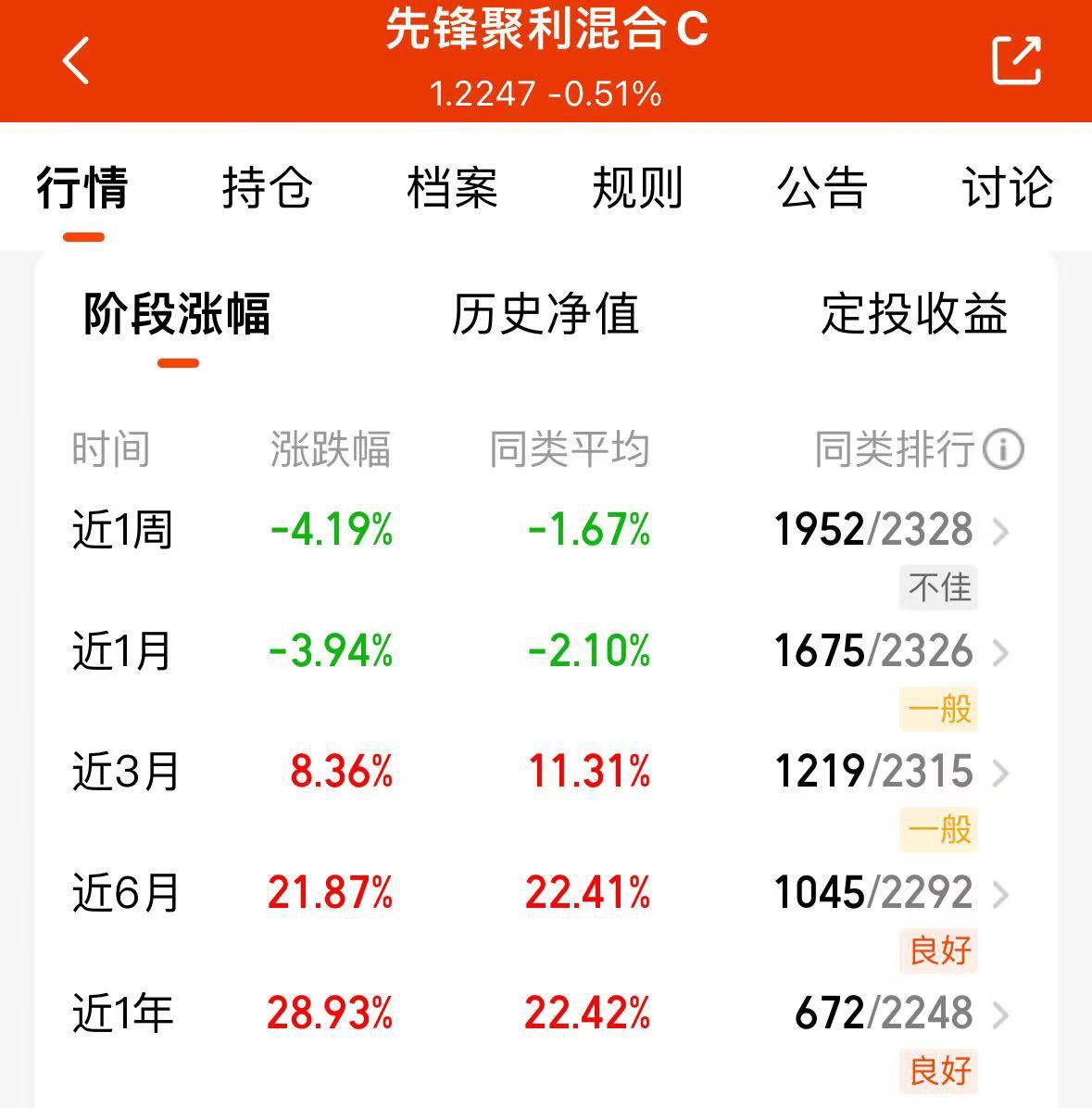 电子需求爆发风口抓得准,先锋聚利混合C略微回调,今天正好有上车点果断上涨,近三个月8.36%收益,近一年28.93%翻倍级增长,产业趋势把控没得挑