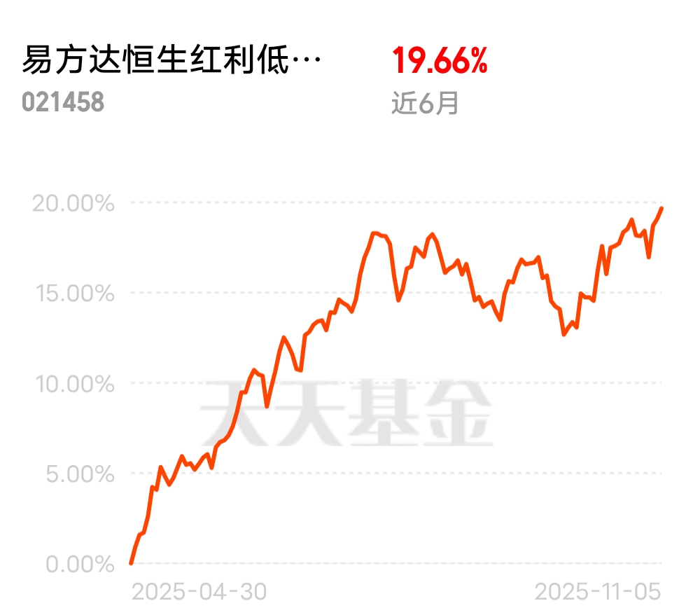 港股现在的估值优势越来越明显,比起其他市场性价比突出,长期配置价值凸显。易方达恒生红利低波联接C没让人失望,近6个月收益19.66%,还保持着低费率的优势,不用为手续费心疼,适合稳健型投资者长期持有。