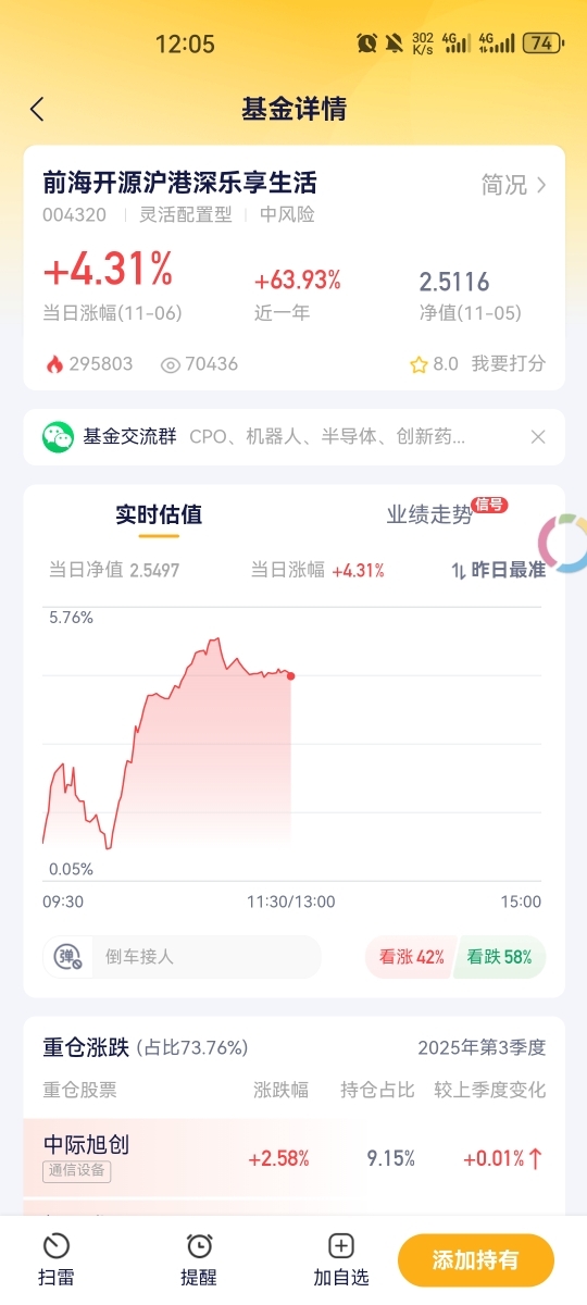 刚去投资的$前海开源沪港深乐享生活$,今天涨4个点,现在CPO还是比较牛的,而且