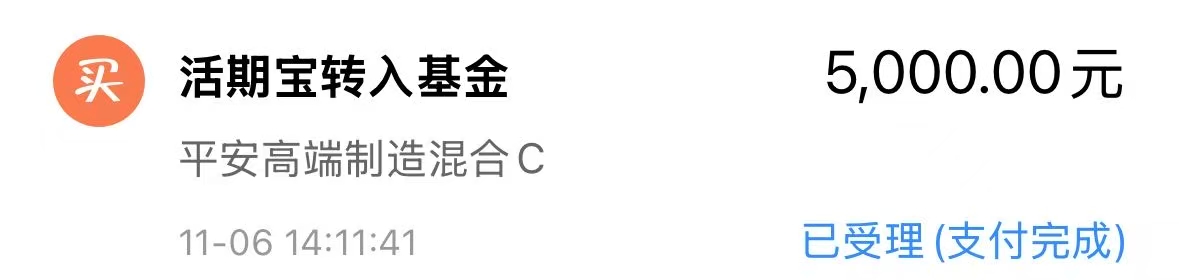 我今天建仓 $平安高端制造混合C(OTCFUND|007083)$ 5000元