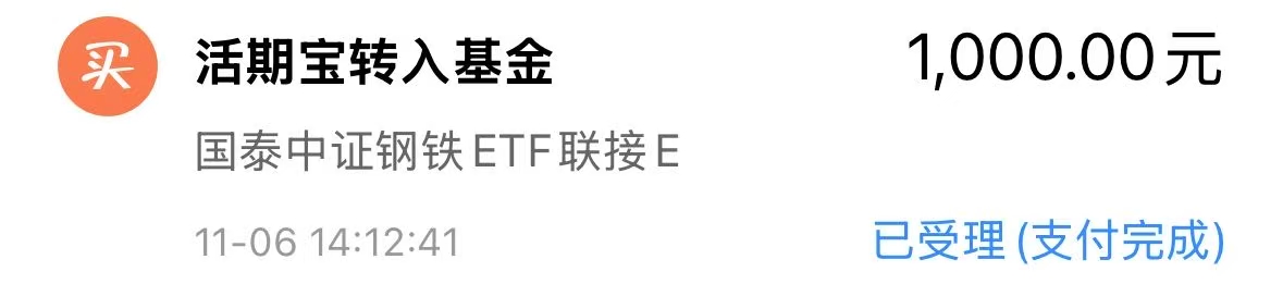 我今天继续加仓$国泰中证钢铁ETF联接E(OTCFUND|022586)$ 1000元