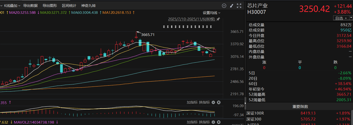 芯片板块今天大幅反攻,没有等到60日均线就开始反弹,我有点后悔没有趁前几天加大布局。