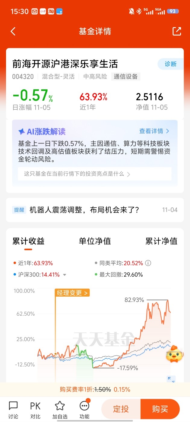 业绩曲线美如画! 乐享生活近1年稳定跑赢沪深300超49个百分点,11月6日净值冲上2.6640创新高!关联板块CPO涨3%。黄金坑别错过