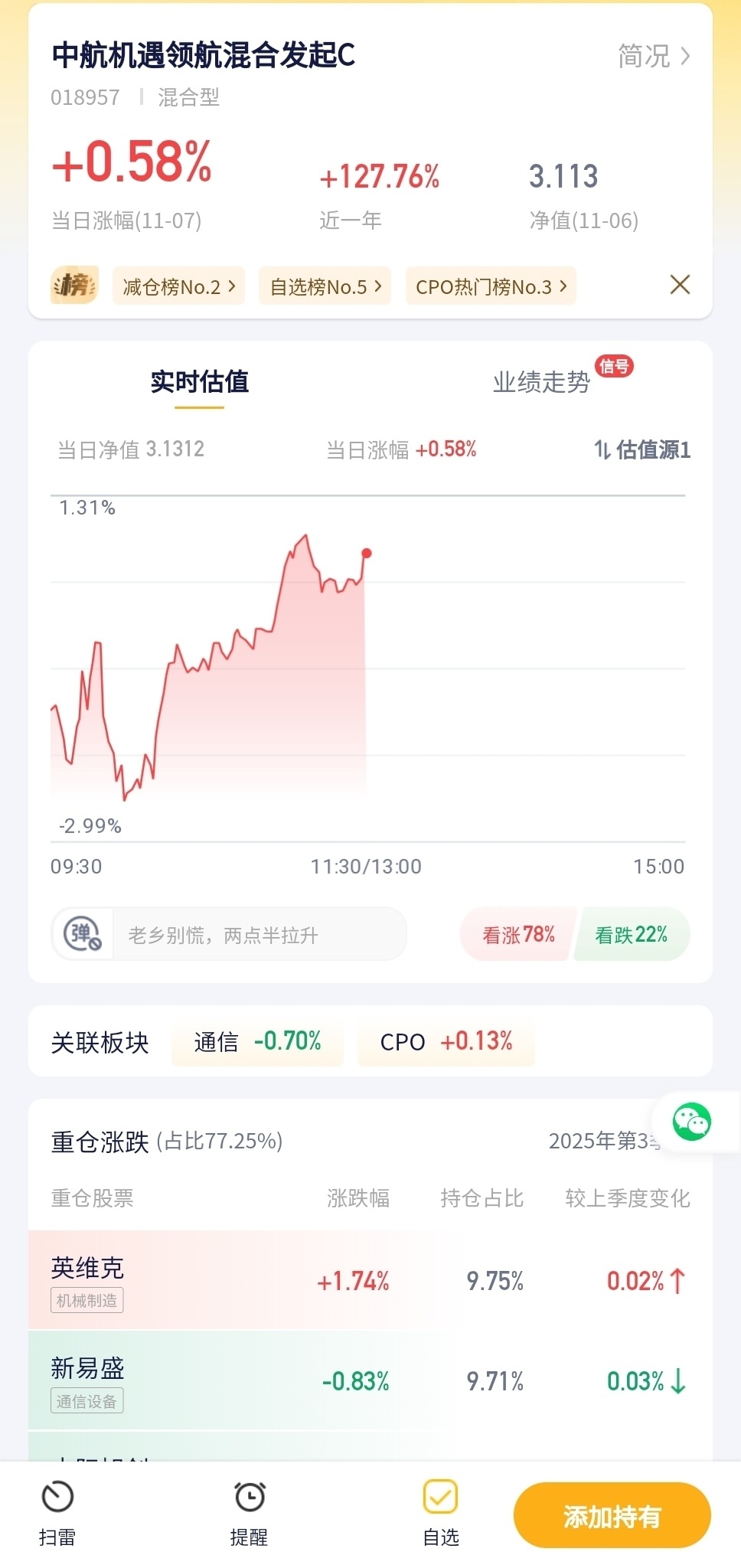 中航机遇领航混合发起C今日预估涨幅+0.58%!