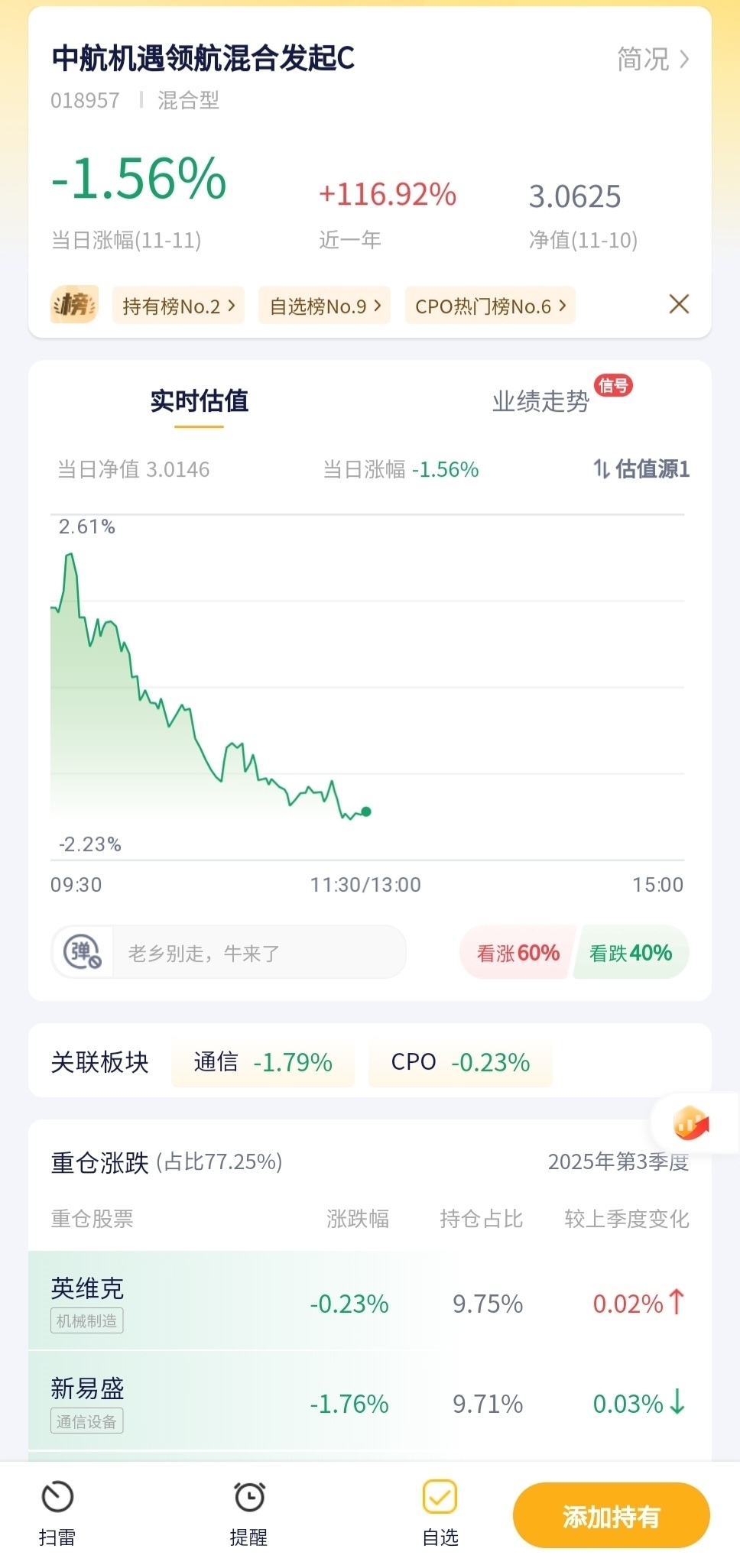 这基金今天跌了1.56%,市场上机遇领航类的基金跟着板块调整,后续得看市场能不能给机会。