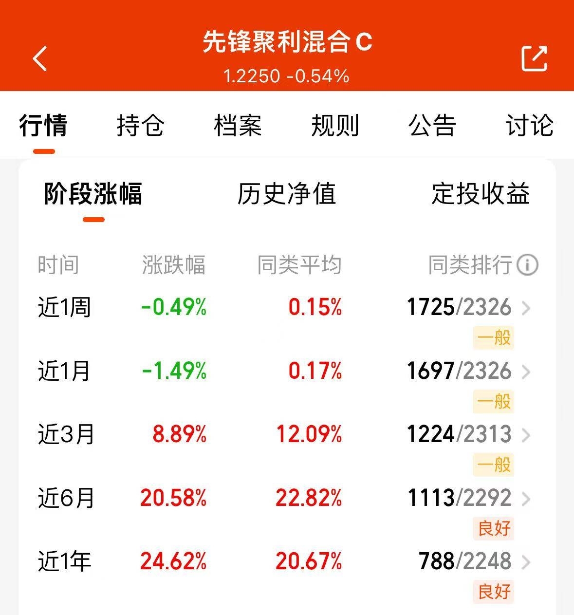 先锋聚利混合C这波够强势,略微回调,今天正好有上车点,近1年24.62%,资金认