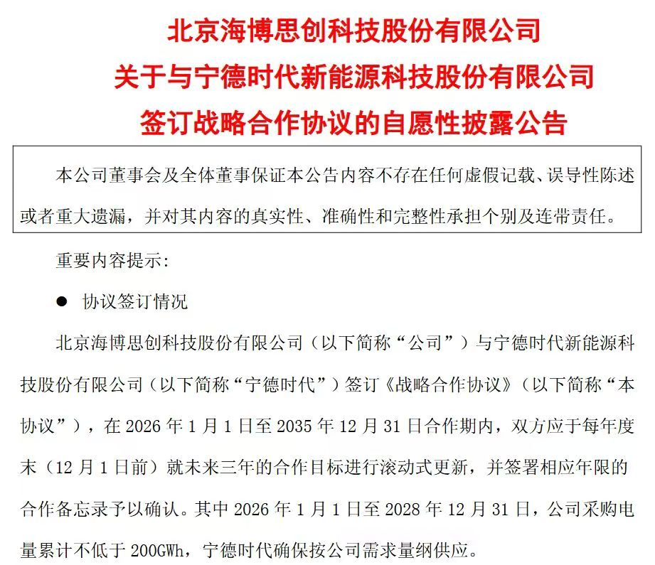 这个合作主要内容为电池及系统产品供应合作,合作期限为2026年1月1日至2035年12月31日。
