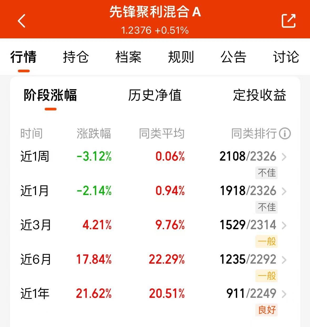 略微回调,今天正好有上车点的点位,先锋聚利混合A近1年21.62%收益更显稳健,三个月4.21%强势依旧