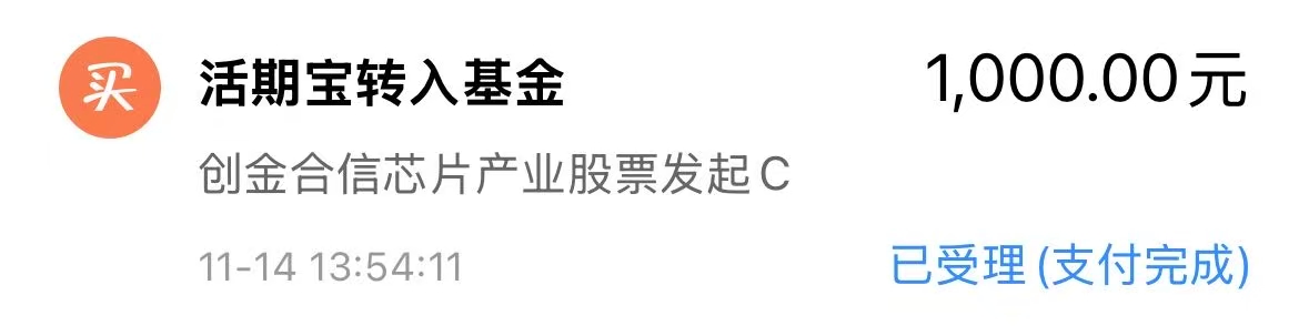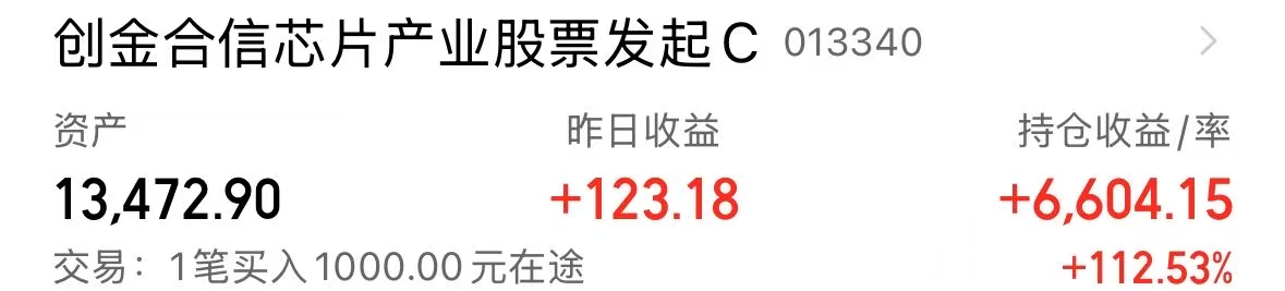 我今天继续回补$创金合信芯片产业股票发起C(OTCFUND|013340)$ 1000