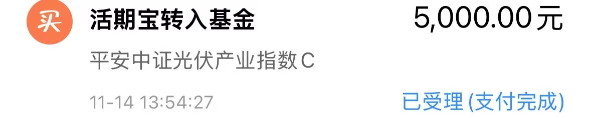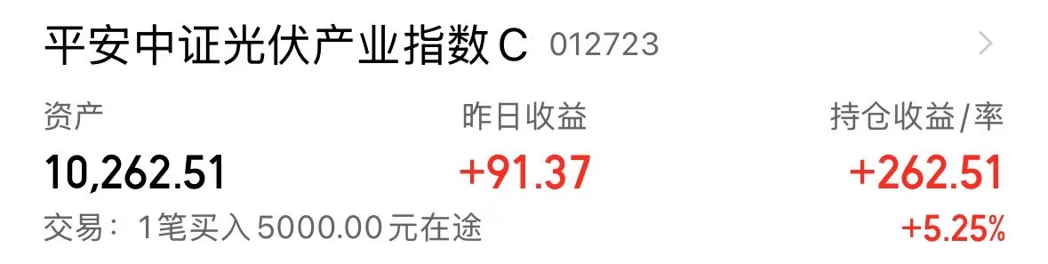我今天继续加仓$平安中证光伏产业指数C(OTCFUND|012723)$ 5000