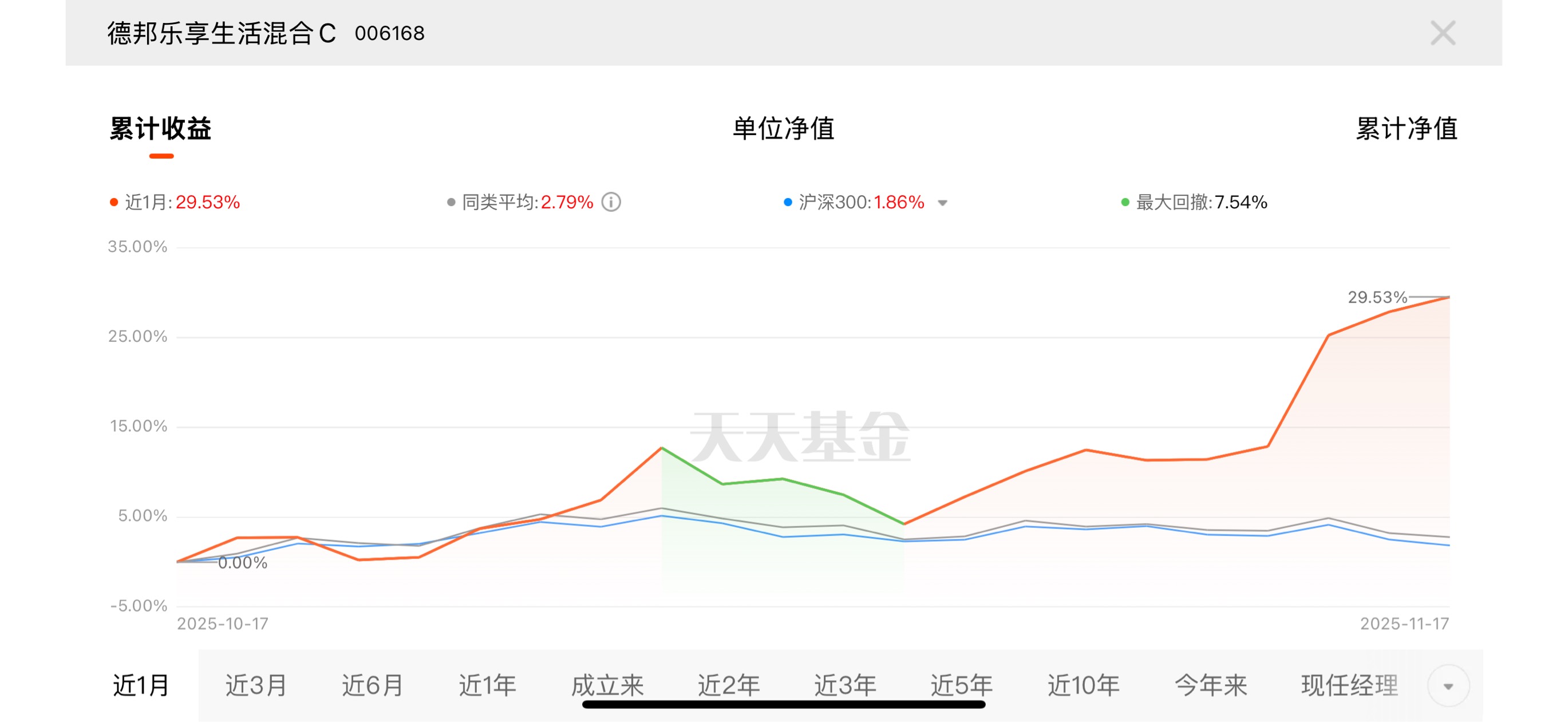 看市场动静就知道,固态电池回调到位要发力了,这不就是倒车接人嘛,上周四德邦乐享生活混合C直接涨11%太亮眼,近一个月29.53%的收益很稳,我已经准备好加仓跟紧了。