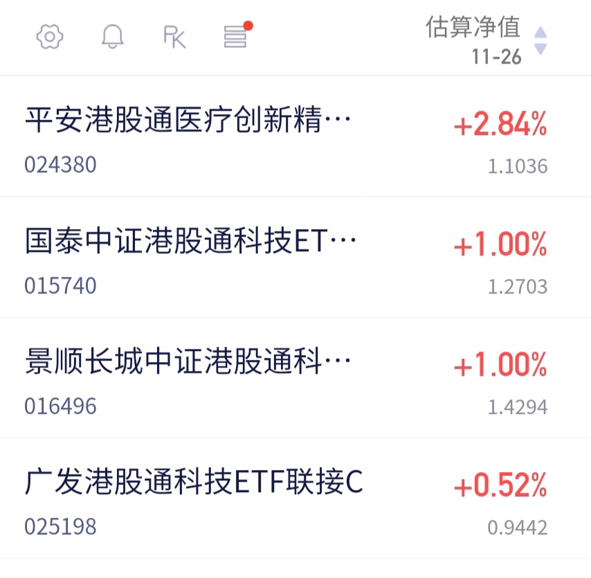 今天港股医疗大涨,平安港股通医疗创新精选混合C估值涨2.84%,表现强劲,港股医疗还在低位,后续还有上涨潜力。$国泰中证港股通科技ETF发起联接C$ $景顺长城中证港股通科技ETF发起联接C$$广发港股通科技ETF联接C$