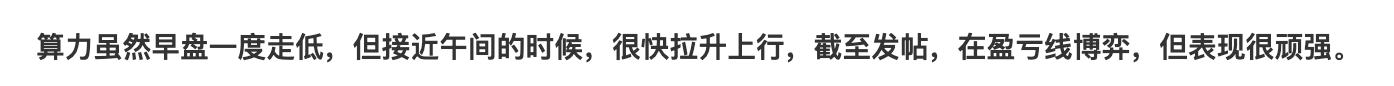 上周五有提醒,算力虽然走低,但表现和顽强,临近上周五收盘,普遍回到盈亏线以上了。