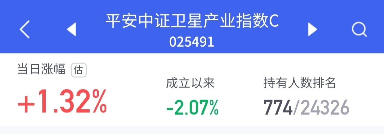 $平安中证卫星产业指数C$ 估值大涨+1.32%,连续爆发,强
