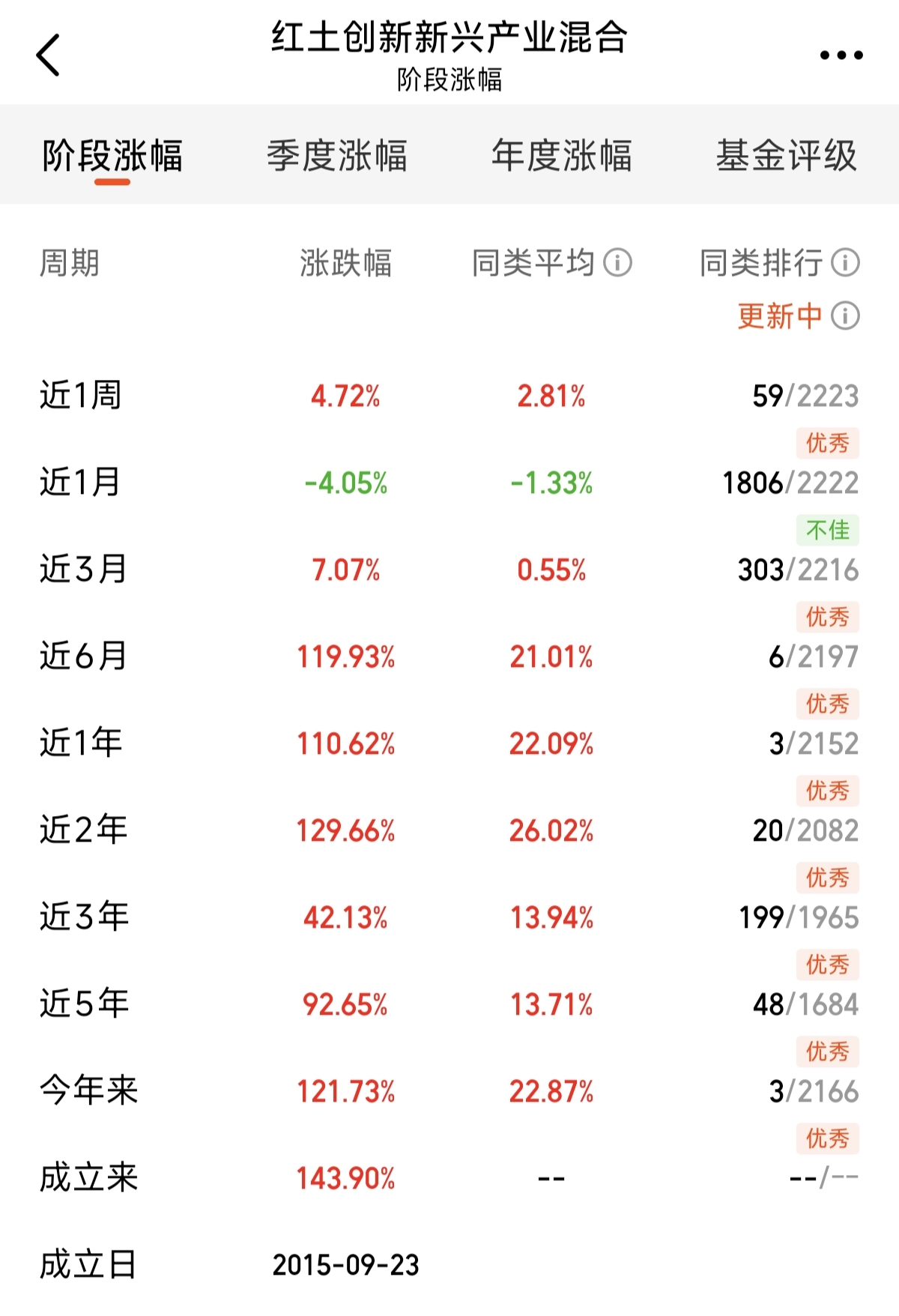 AI产业竞争焦点已从算力规模扩张转向智能密度与能效优化的双重提升,这一趋势直接推动CPO(共封装光学)技术加速从实验室走向规模化量产。红土创新新兴产业混合(001753)精准贴合这一产业逻辑,核心持仓集中于CPO产业链量产阶段的优质标的。从业绩表现来看,基金近一年收益率达110.62%,今年以来收益121.73%,近六个月收益率119.93%,三大时间维度的稳健表现,印证了其对产业趋势的前瞻把握与标的筛选逻辑的有效性。