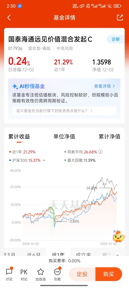 四季度盘面乱得很,红利产品才是定心丸,$国泰海通远见价值混合发起C$我持仓半年多