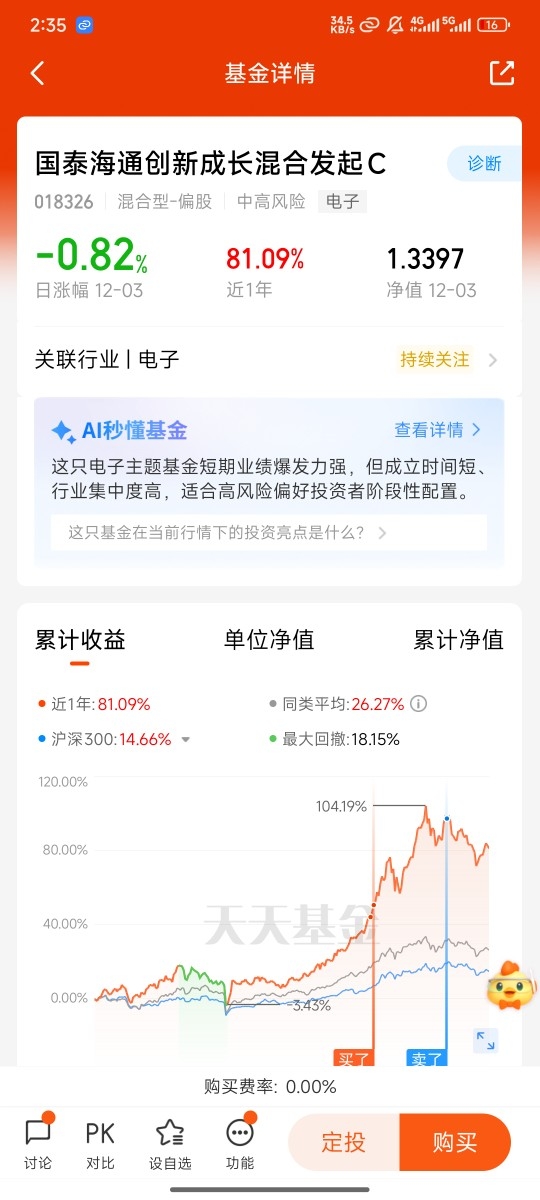 CPO板块这下彻底熄火了,还好我选了$国泰海通创新成长混合发起C$,这只基金近一