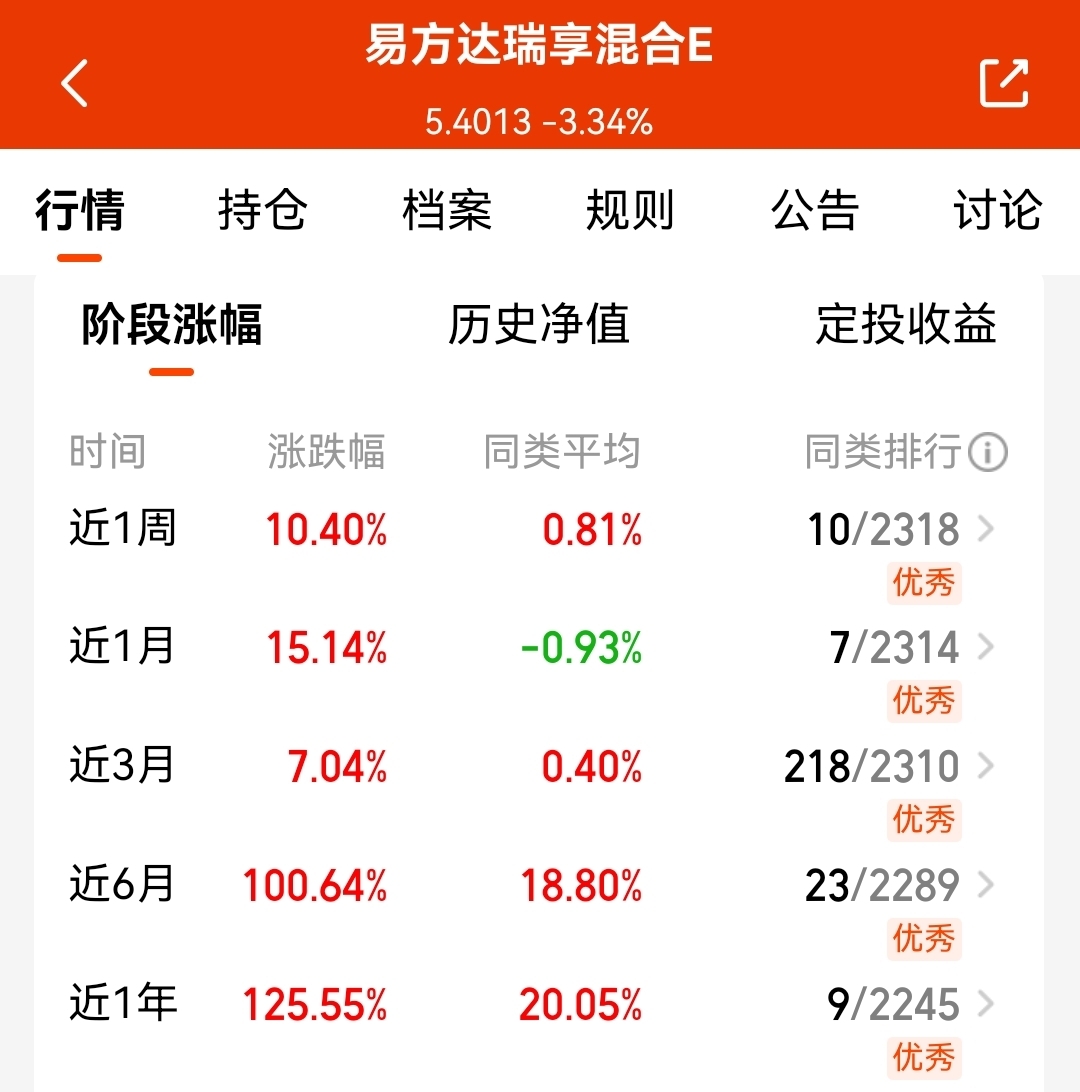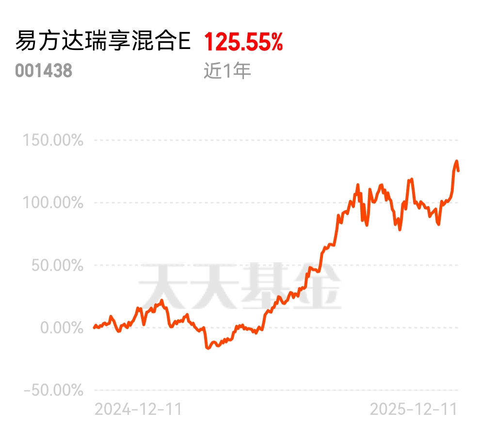 我也继续看这支$易方达瑞享混合E$ ,也是持仓CPO光模块,近1年收益上涨125.55%了,再次翻倍,跑赢前期强势的机器人、创新药等板块,算是年内科技主线了,赚钱效应确实还可以;
