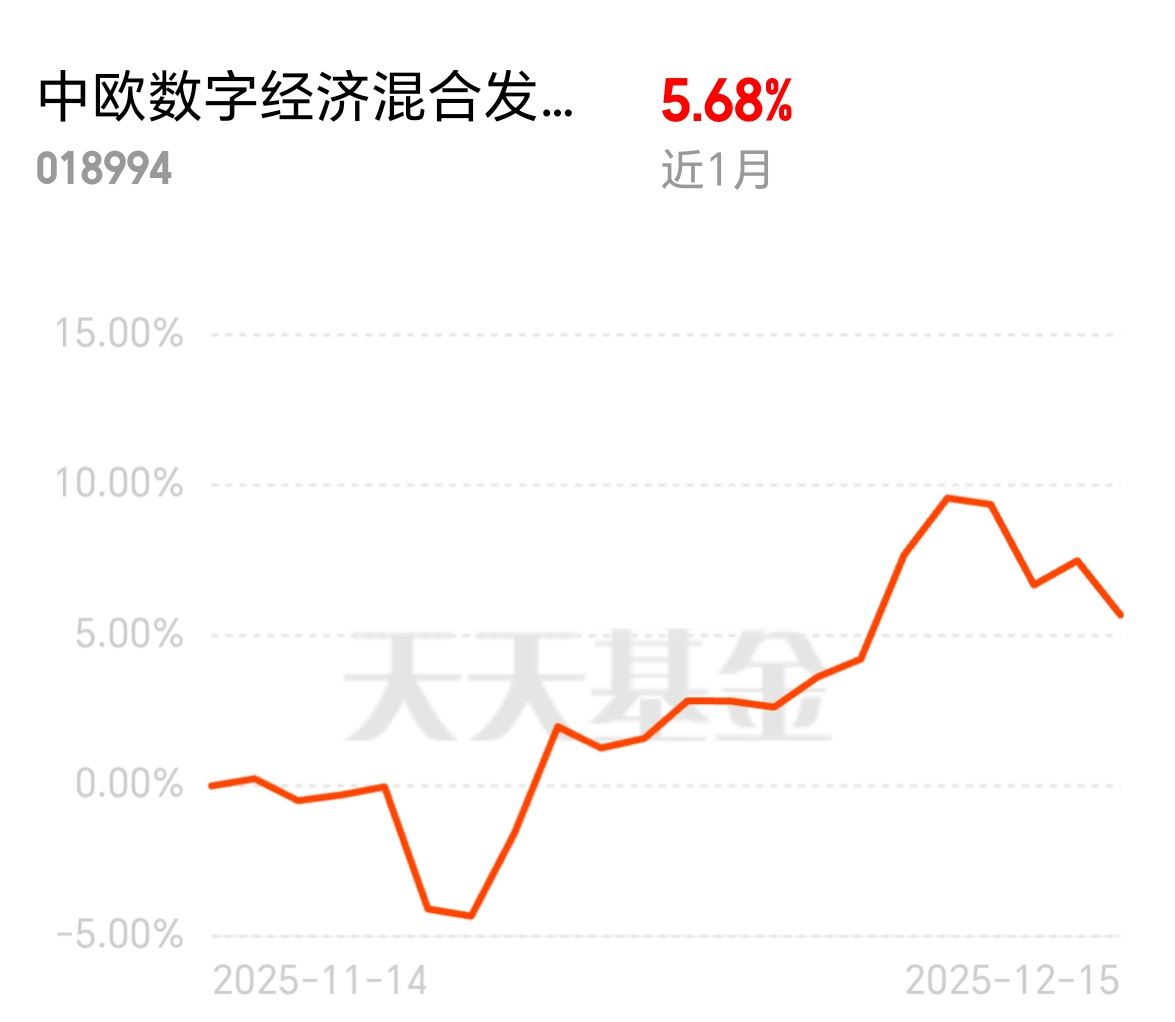 中央经济工作会议释放积极信号,数字经济和 “AI+” 被重点提及,短期市场要发力。及时出手,中欧数字经济混合发起 C 近 1 月涨 5.68%,捕捉短期修复行情。$中欧数字经济混合发起C$