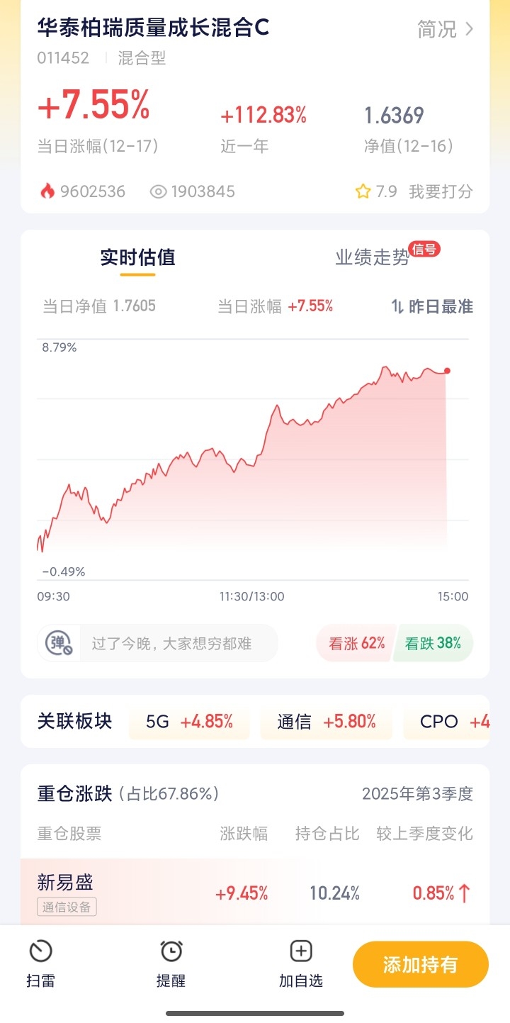 今天CPO板块依旧火热,涨势喜人!背后逻辑很简单,AI算力越来越强,数据传输得跟得上,CPO技术刚好解决了这个痛点,而且现在技术成熟了、成本降了,订单也越来越多,业绩有实打实的支撑。我持有的华泰柏瑞这次表现超预期,估值大涨,看得出来在CPO赛道布局得很到位。对于不想冒太大风险又想参与CPO行情的朋友,华泰柏瑞是个好选择,跟着专业的团队布局,比自己盲目跟风炒股踏实多了,继续拿着看看后续表现~$华泰柏瑞质量成长C$