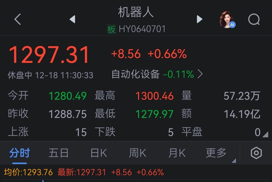 尤其是年底资金谨慎,科技板块内部轮动也快,我觉得作为CPO等算力链的风险对冲,机器人板块依然有较大补涨空间!