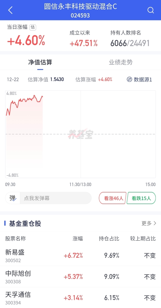这是周末有利好了啊,今天大涨了,我国光计算芯片领悟取得重大突破,今天cpo大涨起飞。看看$圆信永丰科技驱动混合发起C$ 估值起飞了,继续冲5个点