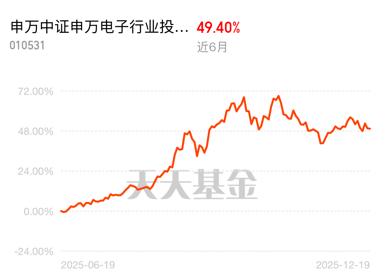 手里中航机遇领航混合C最近没动静,挪了一部分到申万菱信中证申万电子指数C,这是一
