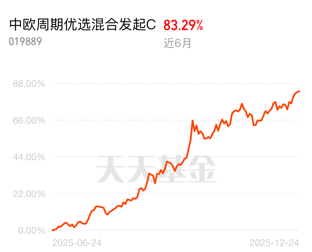 宜春采矿权注销加剧能源金属供给收缩,相关品种价格有支撑。中欧周期优选混合发起 C 近 6 月涨 83.29%,在周期资源类基金中成绩突出,贴合绿色转型长期趋势,短期入场时机不错。