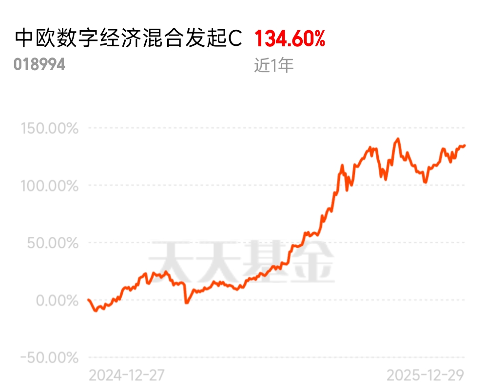 国家加快全国一体化算力网建设,数字经济创新有政策托底,投资要找确定性方向。中欧数字经济混合发起 C 近 1 年 134.60%,光模块、服务器等高弹性标的配齐,还配龙头稳盘,贴合 AI 主线。