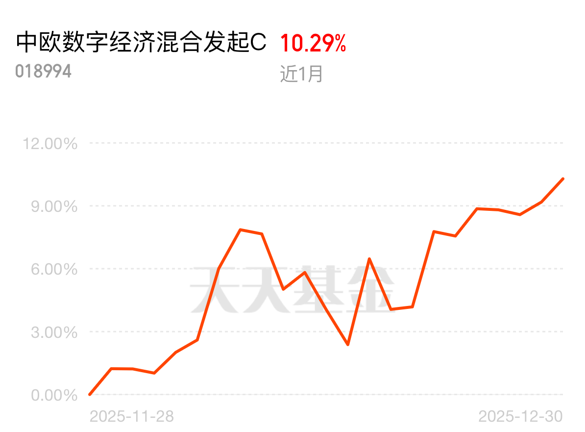 中央经济工作会议强调科技创新引领产业升级,AI 赛道获强力支撑。$中欧数字经济混合发起C$ 近 1 月 10.29%,重仓进入英伟达供应链的龙头,配置聚焦不分散,短期跟着风口赚收益。