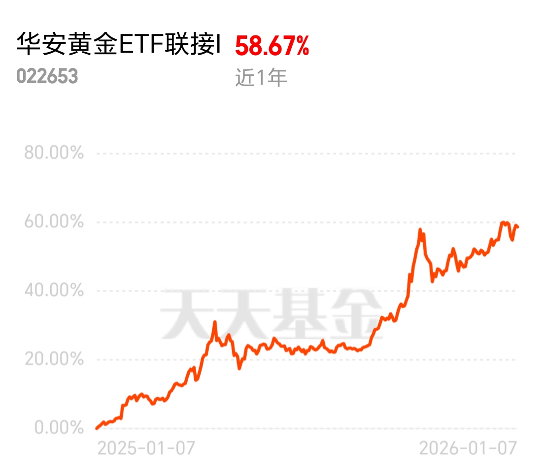 震荡市就靠$华安黄金ETF联接I$,近一年涨58.67%,低波动稳收益,0申购费