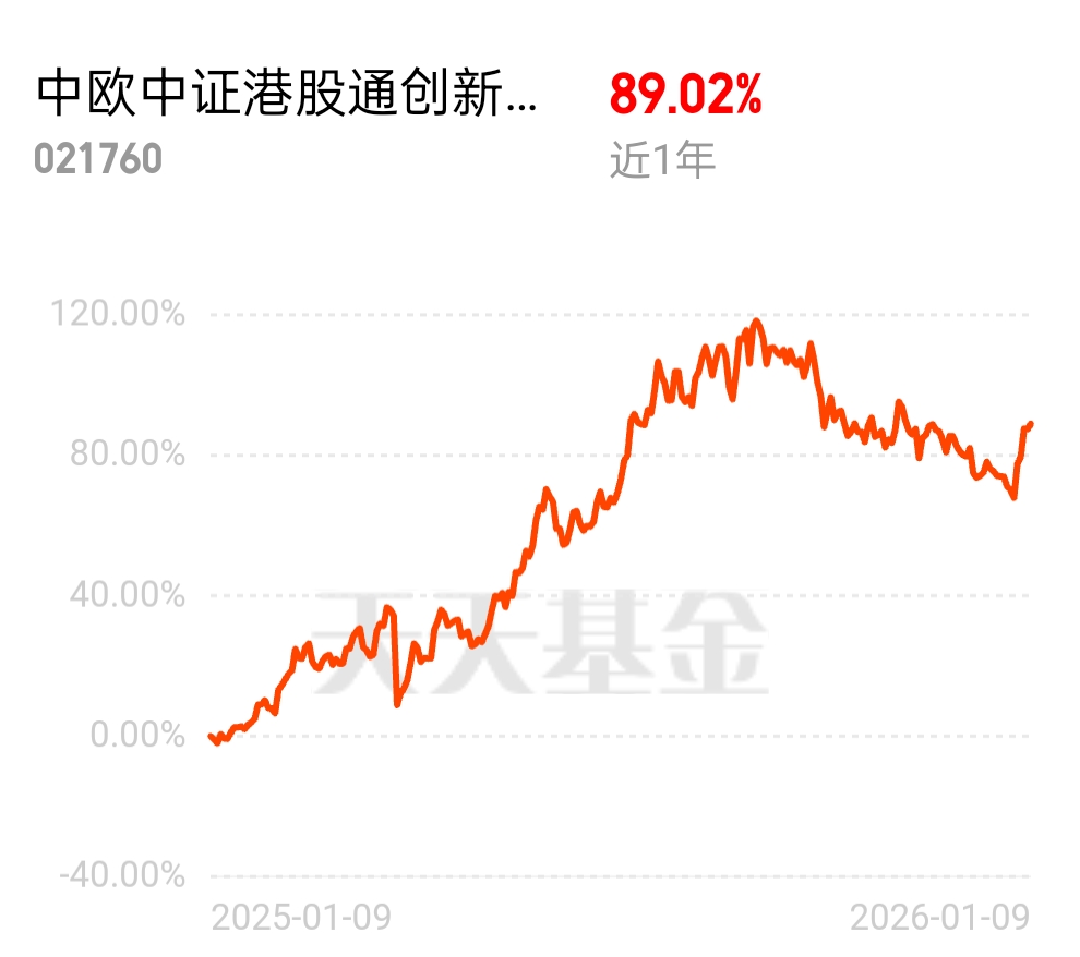年末股市结构性变化明显,科技股不再一家独大,波动还越来越大。追高需谨慎,创新药是更好选择,中欧中证港股通创新药指数发起 C 近 1 年 89.02%,集中布局龙头企业,板块行情来了能稳稳吃肉。$中欧中证港股通创新药指数发起C$