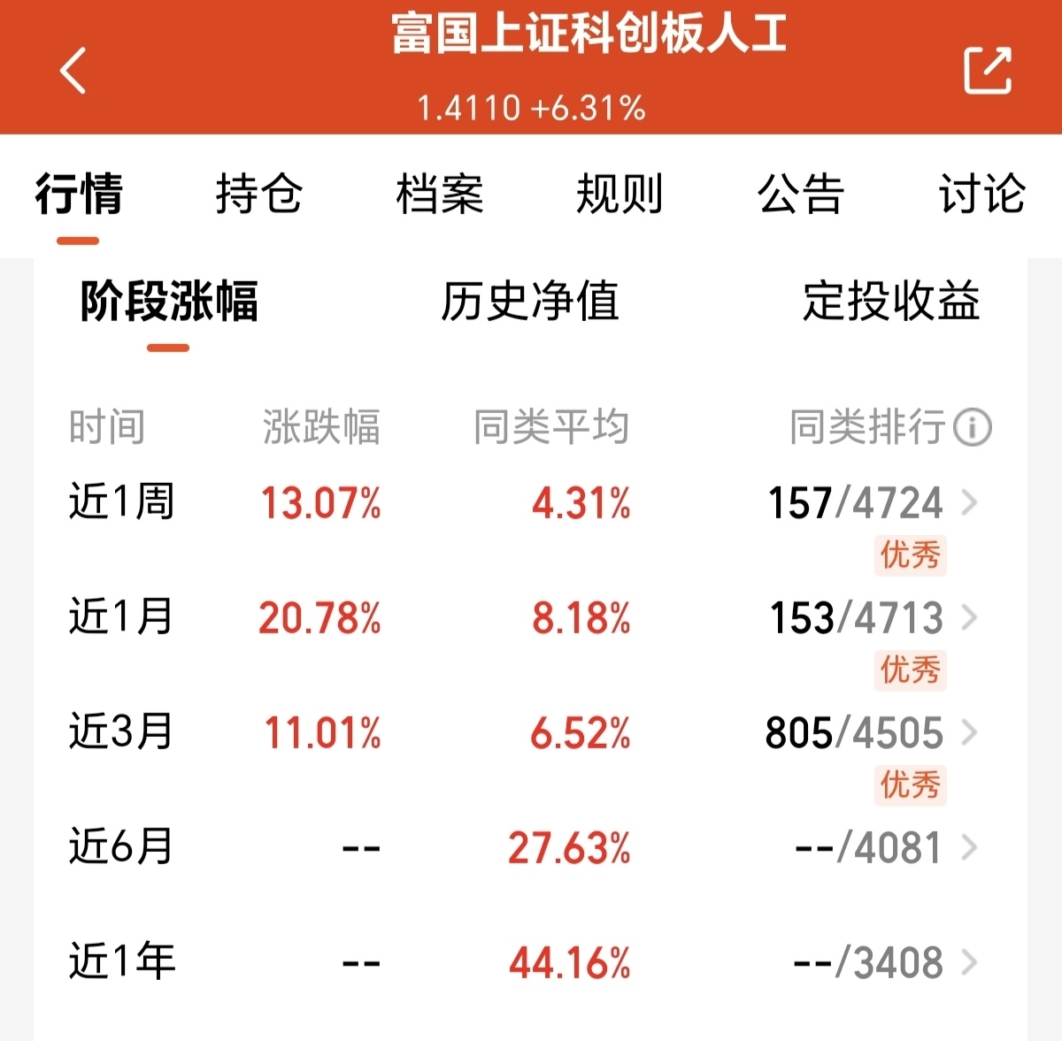 科技党狂喜!富国上证科创板人工智能单日涨6.49%,近一月涨21.51%,重仓寒
