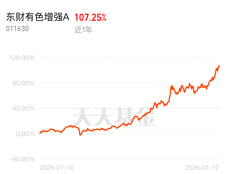 有色金属指数连番上涨,资源股迎来黄金期,谁还守着过时板块?$东财有色增强A$ 比别家指增基金有劲多了,近 1 年 107.25%,能涨还抗揍,堪比以前的纳指。