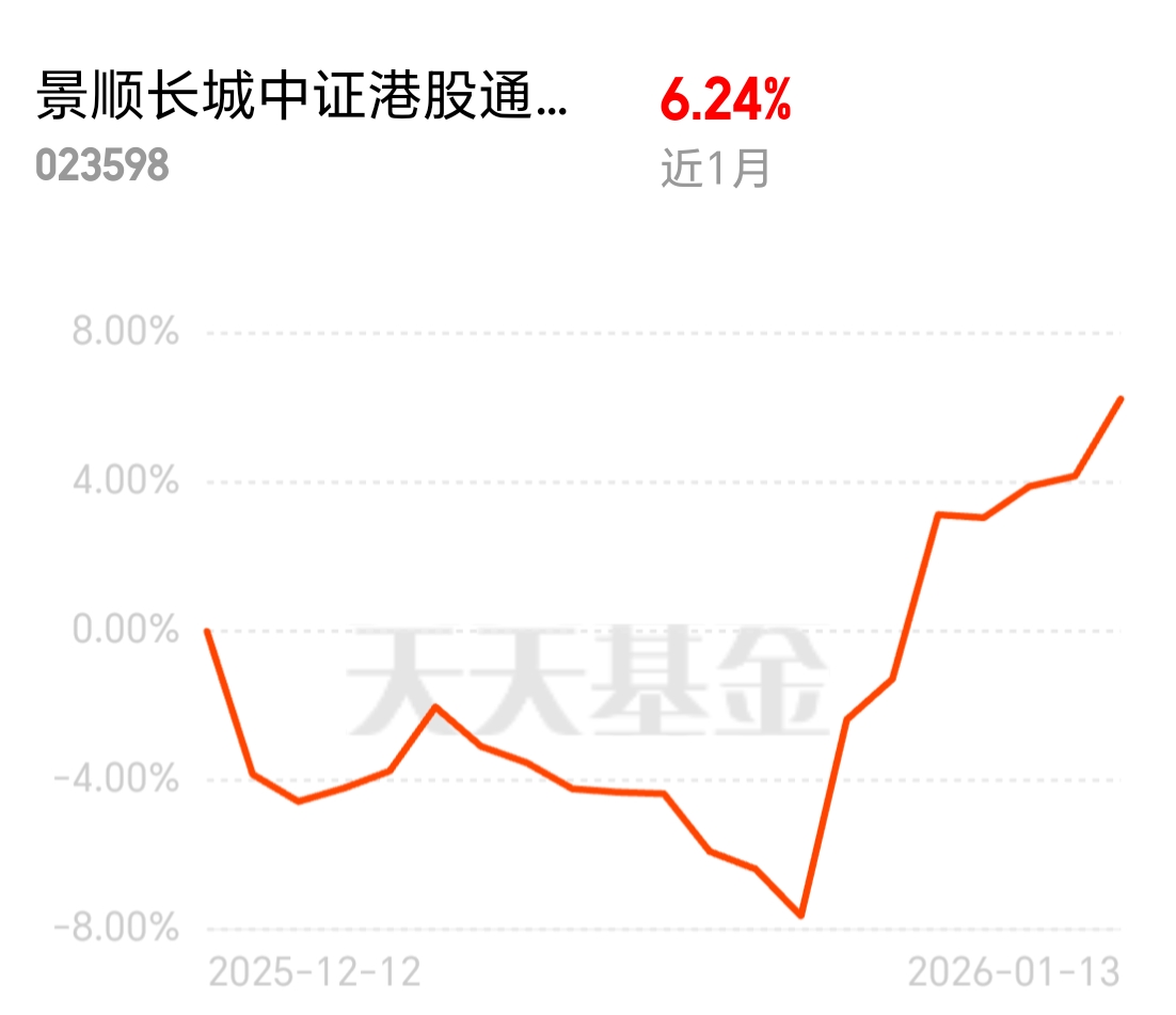 开年最火赛道非港股创新药莫属,9 天 8 涨飙超 17%,还连着 4 天上涨。景顺长城中证港股通创新药 ETF 联接 C 近 1 月 6.24%,估值仍相对较低,7 免规则加持,短线布局性价比拉满。$景顺长城中证港股通创新药ETF联接C$