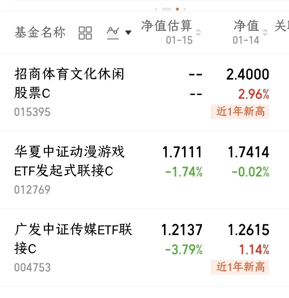 $招商体育文化休闲股票C$ 昨日上涨2.96%,创近一年新高。该基主要聚焦AI应用,游戏,传媒,最近发展火热,未来可期。