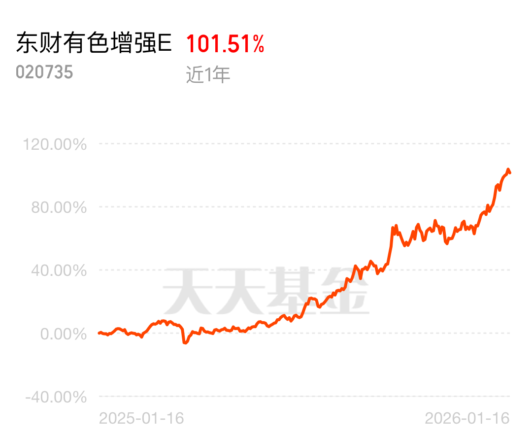 CPO行情起伏不定,有色却成了慢牛典范,中证有色指数稳步涨!东财有色增强E近1年