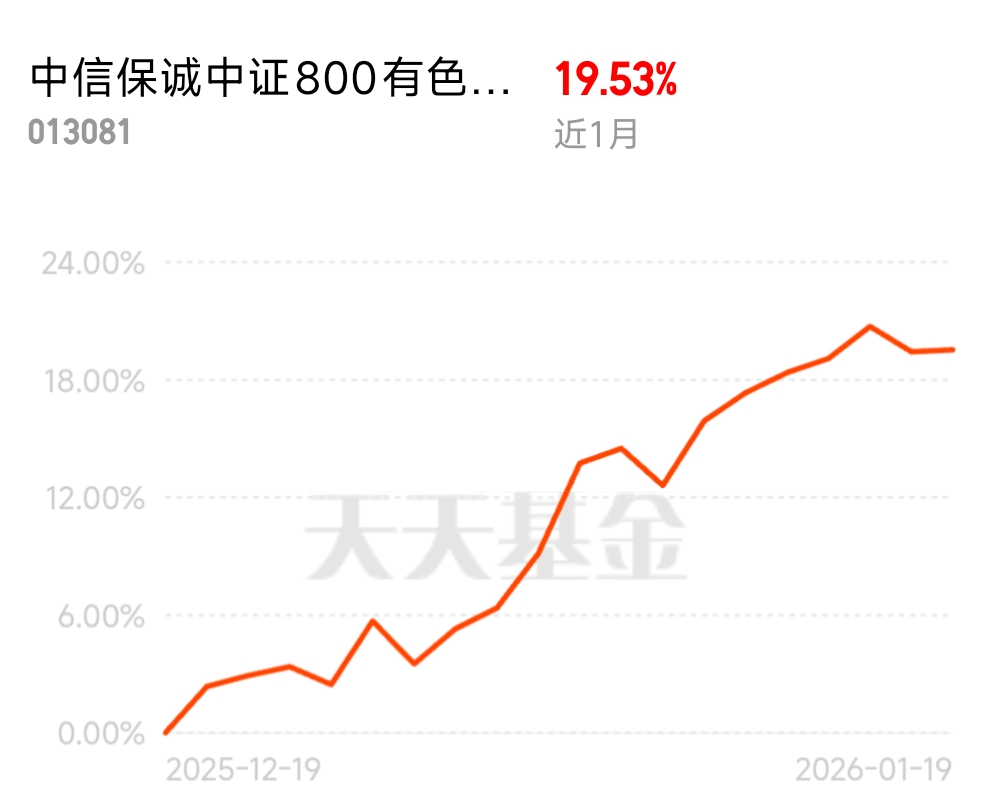 有色板块散户恐慌割肉,主力趁机吸筹,正是加仓好时机。中信保诚中证 800 有色指数 (LOF) C 近 1 月涨 19.53%,低位入场,坐等主力拉升。$中信保诚中证800有色指数(LOF)C$