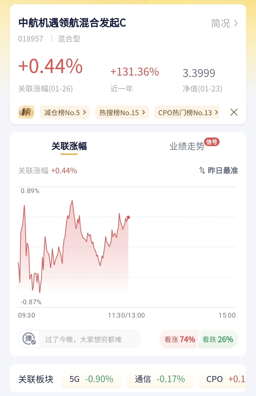 中航机遇领航混合发起C今日预估涨幅0.44%!