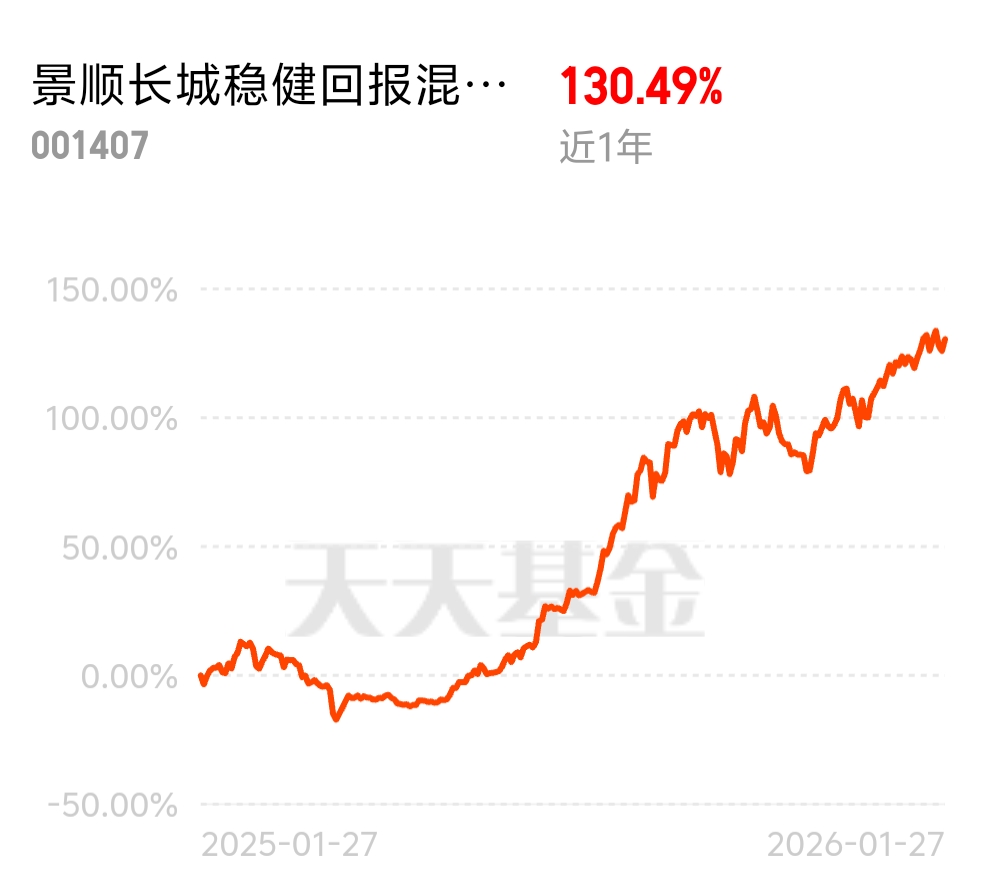 想长期投科技的别错过,景顺长城稳健回报混合 C 近 1 年涨 130.49%,经理专业的管理能力保驾护航,业绩超给力,科技主线不动摇,逢跌补布局,0.6% 管理费长期省不少