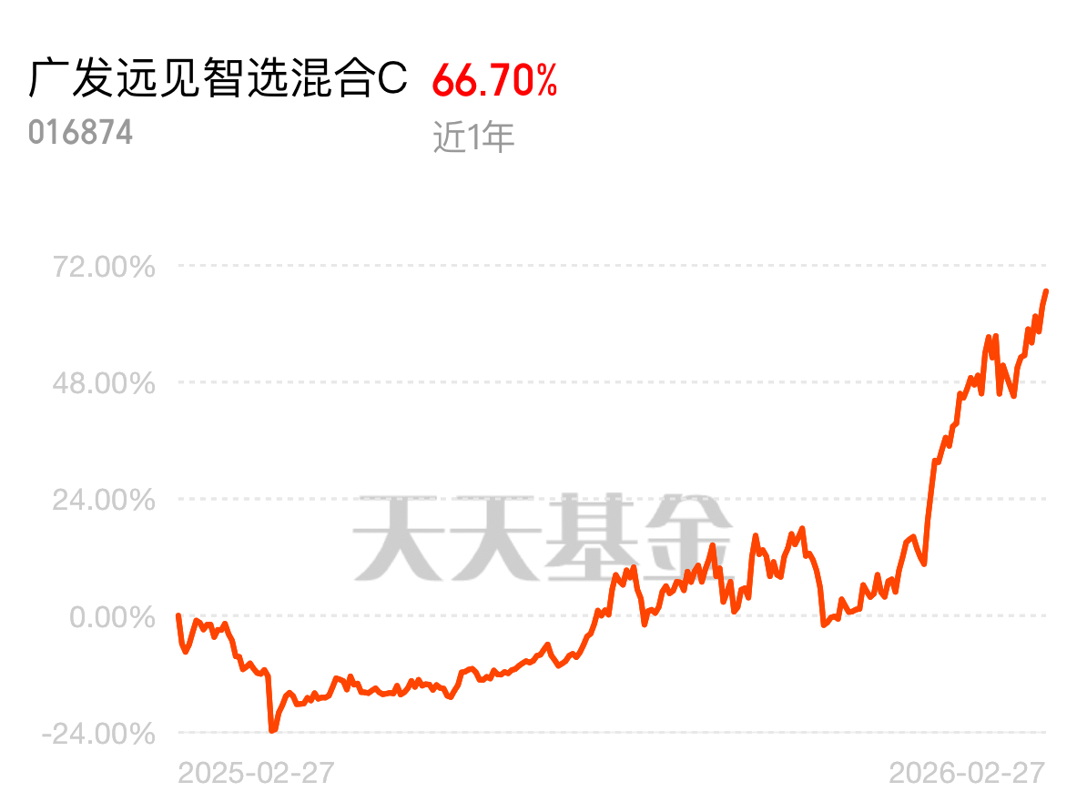 广发远见智选混合C年前那波逆市连涨4天我就知道这基不简单,上周五继续大涨1.83%,涨幅远超同类基,昨天虽然存储板块跌了,但这基表现依然非常强,看的出来调仓了,业绩更抗打,买基金就是这样,主理人逻辑在线,咱就省心拿着等风来$广发远见智选混合C$